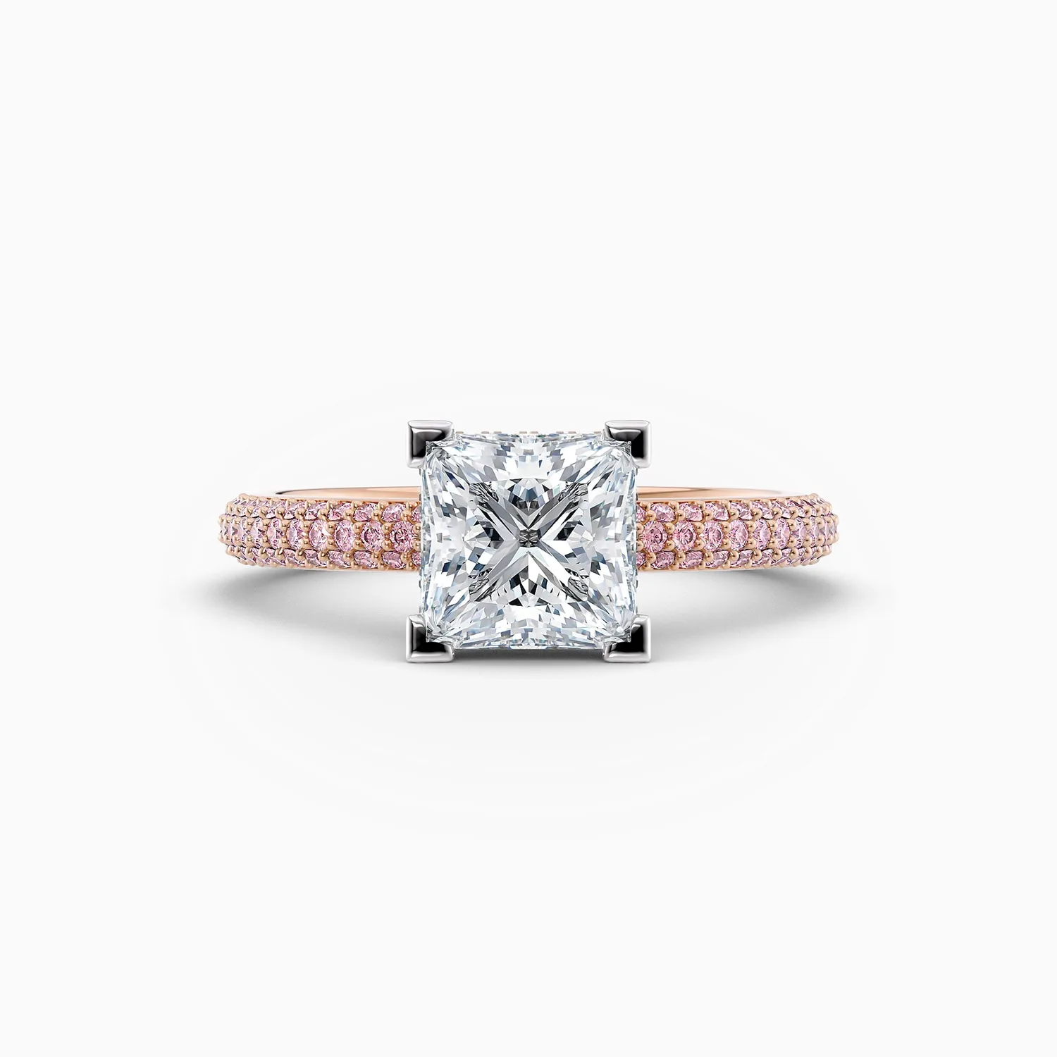 The 18ct rose gold band features a three-row pavé setting of rare Argyle 6PP pink diamonds, adding warmth and colour contrast. Handcrafted by Nick Ireland in his Brisbane studio, the Sophia is also available in 18ct yellow, white gold, or platinum, with customisable hidden diamond halo options in Argyle 6PP pink or brilliant white diamonds.