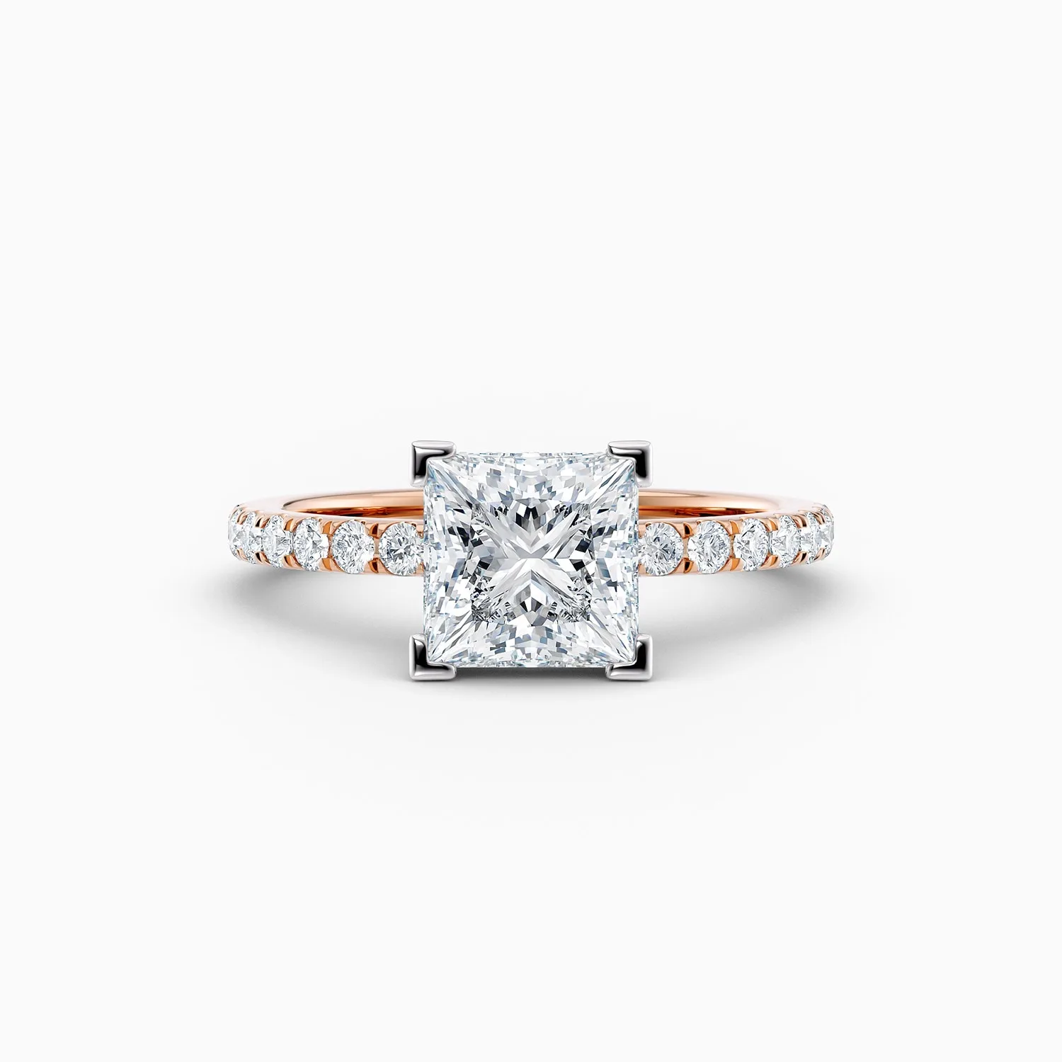 The Cora engagement ring is a timeless and elegant design, crafted to showcase the clean symmetry and brilliance of an Ideal Princess Cut diamond. Available in 1ct, 2ct or larger, each GIA-certified diamond is held securely in a refined white gold four-claw setting that enhances its sparkle. For a subtle, personal detail, choose between a round brilliant white diamond hidden halo or a single white diamond in a hidden rub-over setting beneath the centre stone.