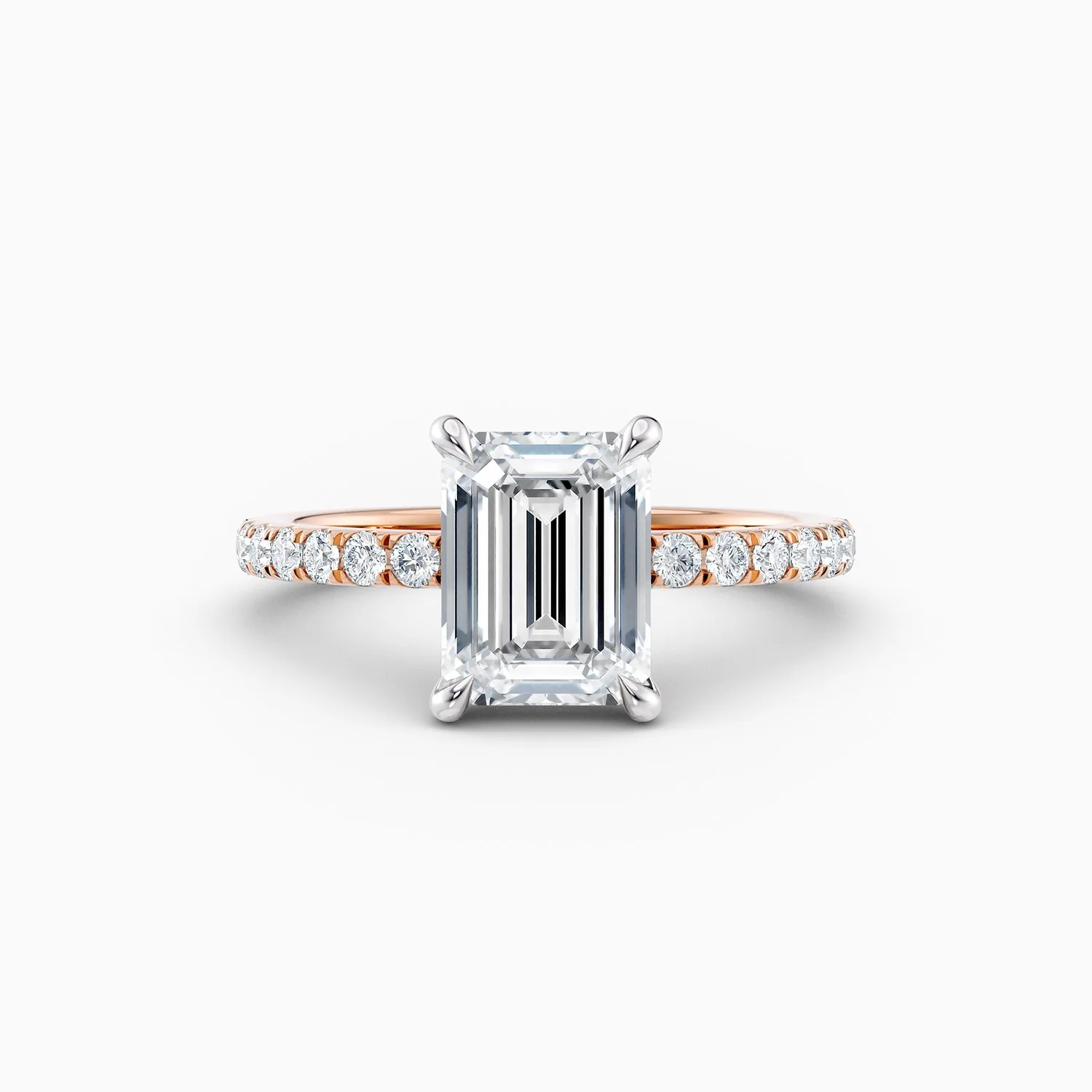 Cora, an exquisite engagement ring that combines timeless design with modern versatility. Choose from 1ct, 2ct, or larger Ideal Emerald cut diamonds as the captivating centre piece, exquisitely set in an 18ct white gold four-claw setting. Enhance its allure with an optional hidden halo featuring pink diamonds or a single pink Argyle 6PP diamond in a subtle rub-over setting.