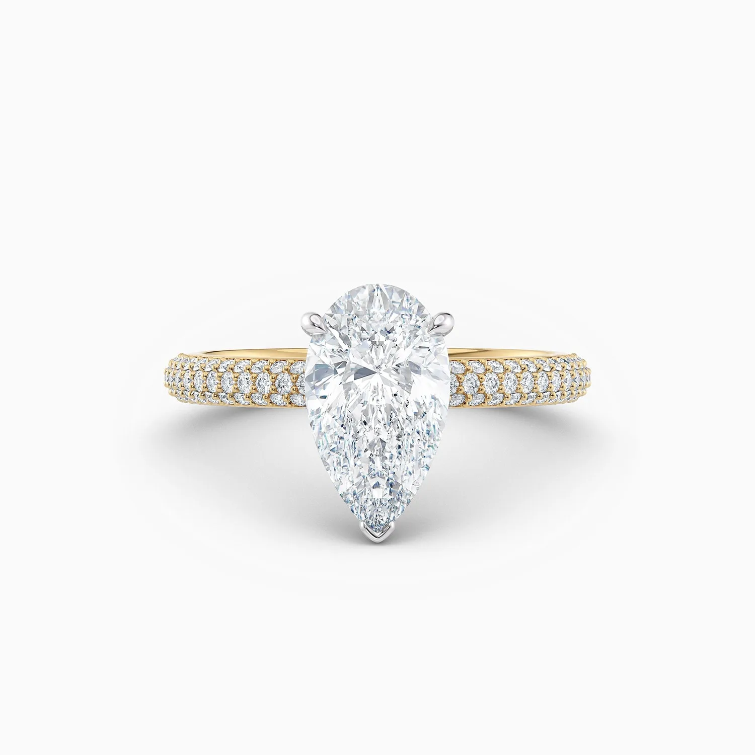 The Sophia engagement ring is a stunning expression of elegance and expert craftsmanship. Featuring a GIA-certified Pear-shaped ideal cut diamond, it is available in 1ct, 2ct, 3ct, and larger sizes. The diamond is beautifully set in a white gold four-claw curved setting, designed to enhance its brilliance and graceful shape.