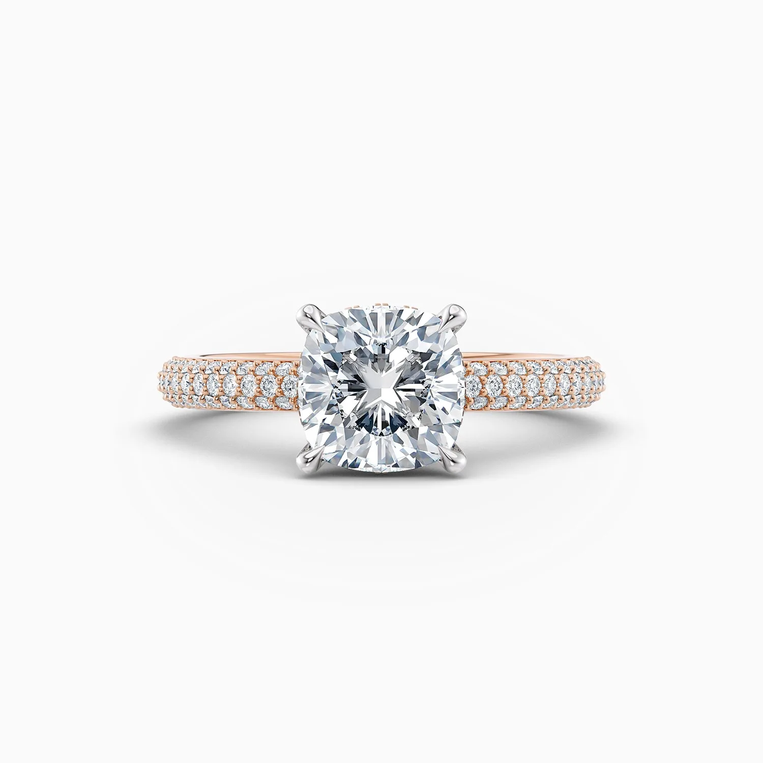 Our Sophia design, a stunning ring that captures timeless beauty and personal expression. Offered with 1ct, 2ct, or larger Ideal Cushion cut diamonds, each ring uniquely embodies your love story. The centre diamond is set in an elegant 18ct white gold four-claw setting, with the option for a hidden halo of exquisite Argyle 6PP pink diamonds or a single Argyle 6PP pink diamond in a subtle rub-over setting, enhancing its individuality.